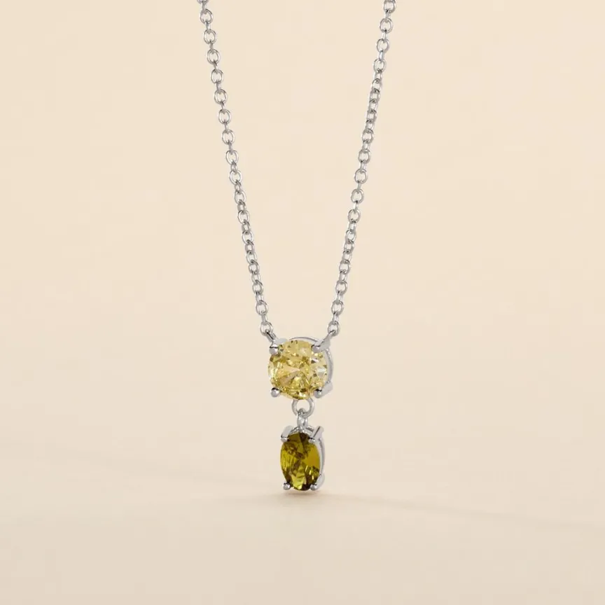 Collier Argent Blanc 925/1000 Serti Griffes Oxydes De Zirconium Vert Clair Et Olive Maille Forçat 45cm