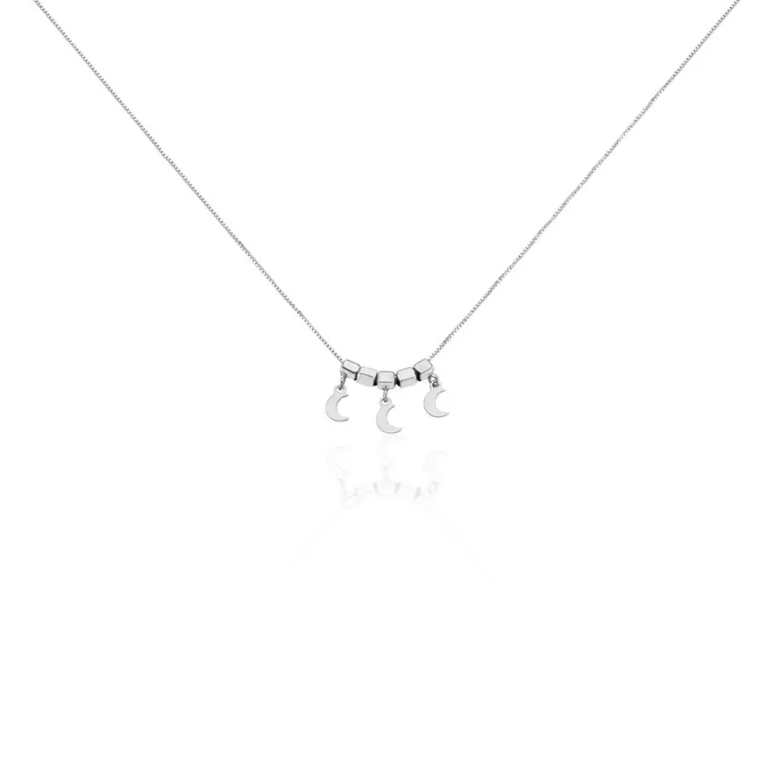 Collier Argent 925/1000 Cubes Et Pampilles Lunes 42cm