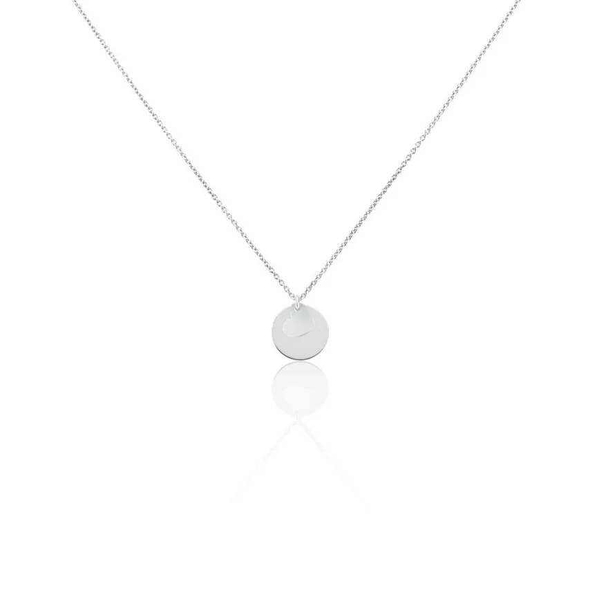 Collier Argent Blanc 925/1000 C艙ur Nacre Blanche Pastille Maille Forçat 45cm