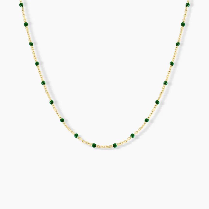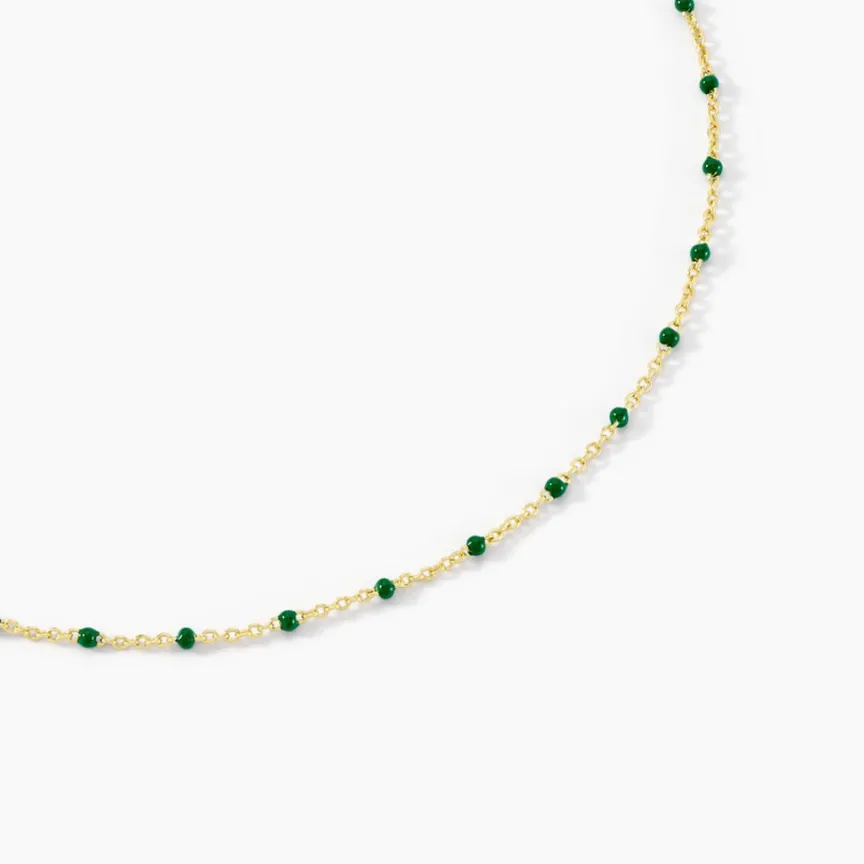 Collier Argent Dore 925/1000 Email Vert 44cm