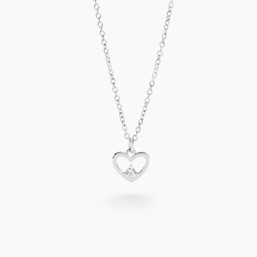 Collier Argent 925/1000 sabino C艙ur Sertis Griffes 1 Oxyde De Zirconium Maille Forcat 45cm