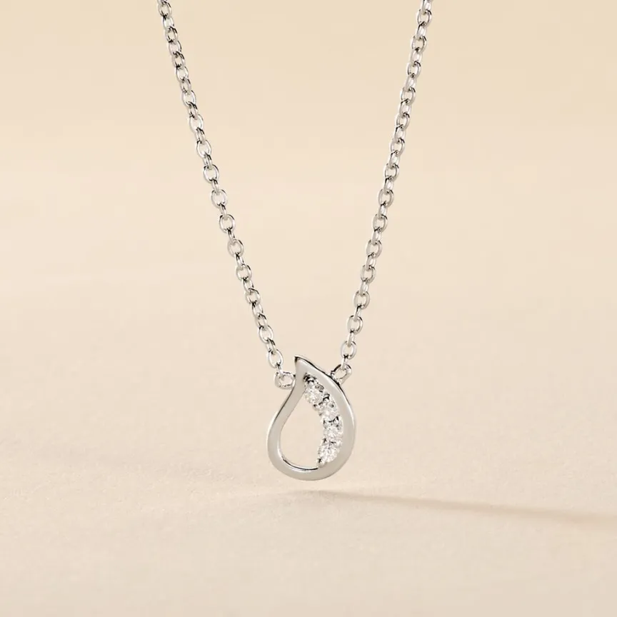 Collier Argent 925/1000 sylvan Goutte Sertis Griffes 4 Oxydes De Zirconium Maille Forcat 45cm