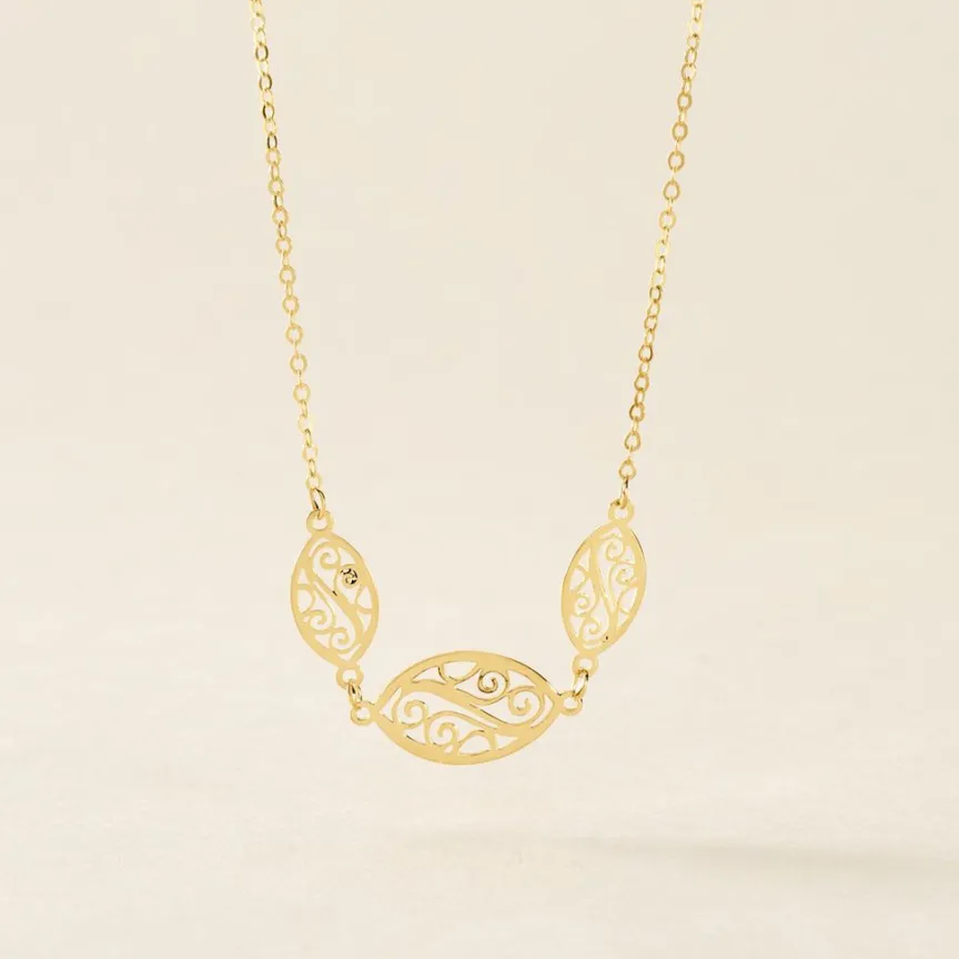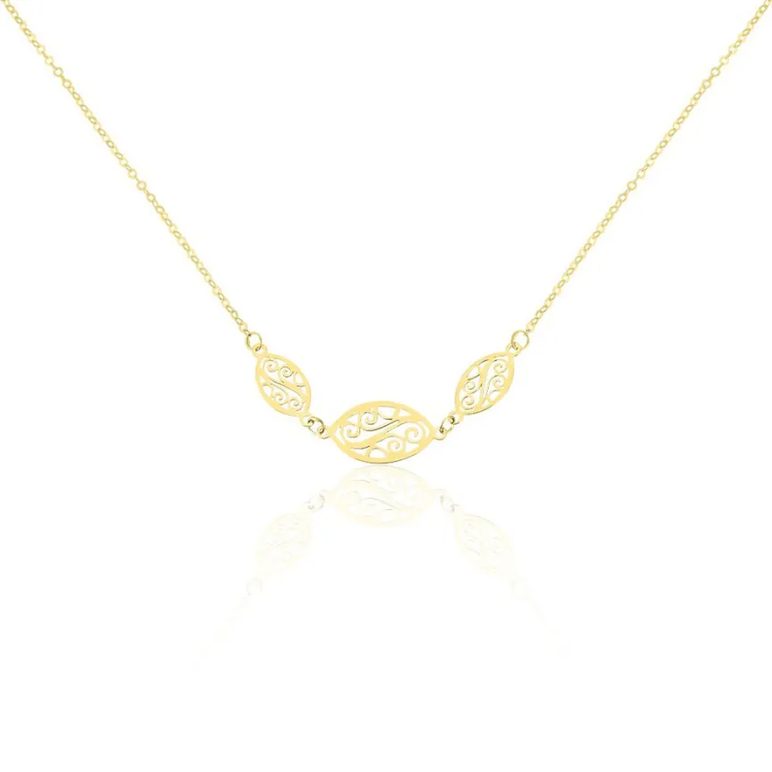 Collier Or Jaune 375/1000 3 Filigranes Maille Forcat Ronde 40+2cm