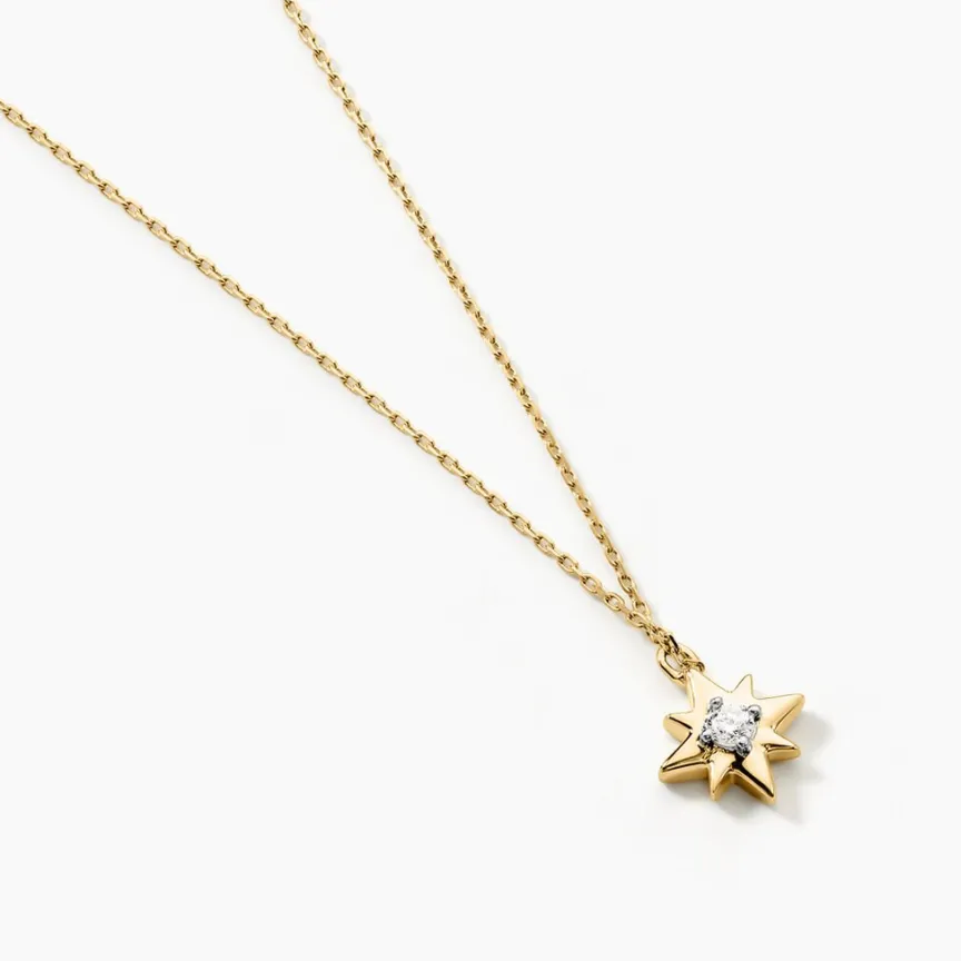 Collier Or Jaune 375/1000 Motif Etoile Oxyde De Zirconium Central 42cm