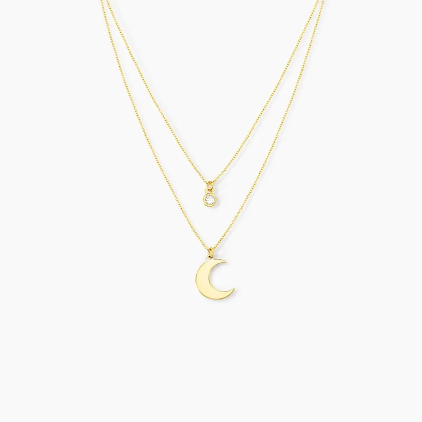 Collier Argent Jaune 925/1000 Lune Et Oxyde De Zirconium Double Mailles Forcat 41cm