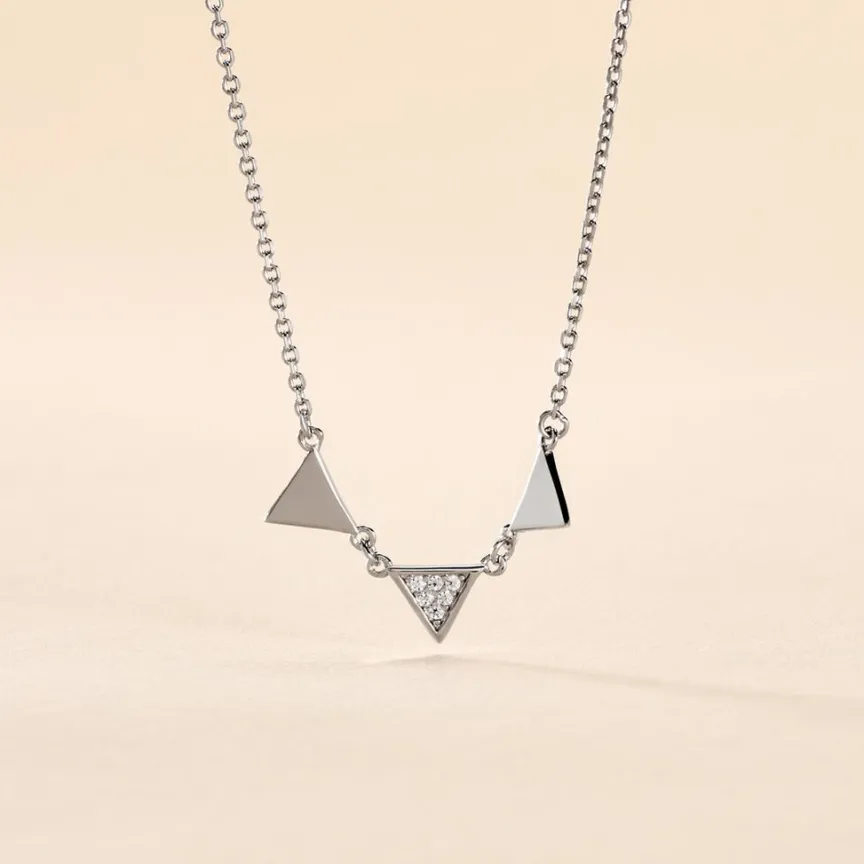 Collier Argent 925/1000 bartoumieu Trio De Triangles Micro Setting Oxydes De Zirconium Maille Forcat 45cm