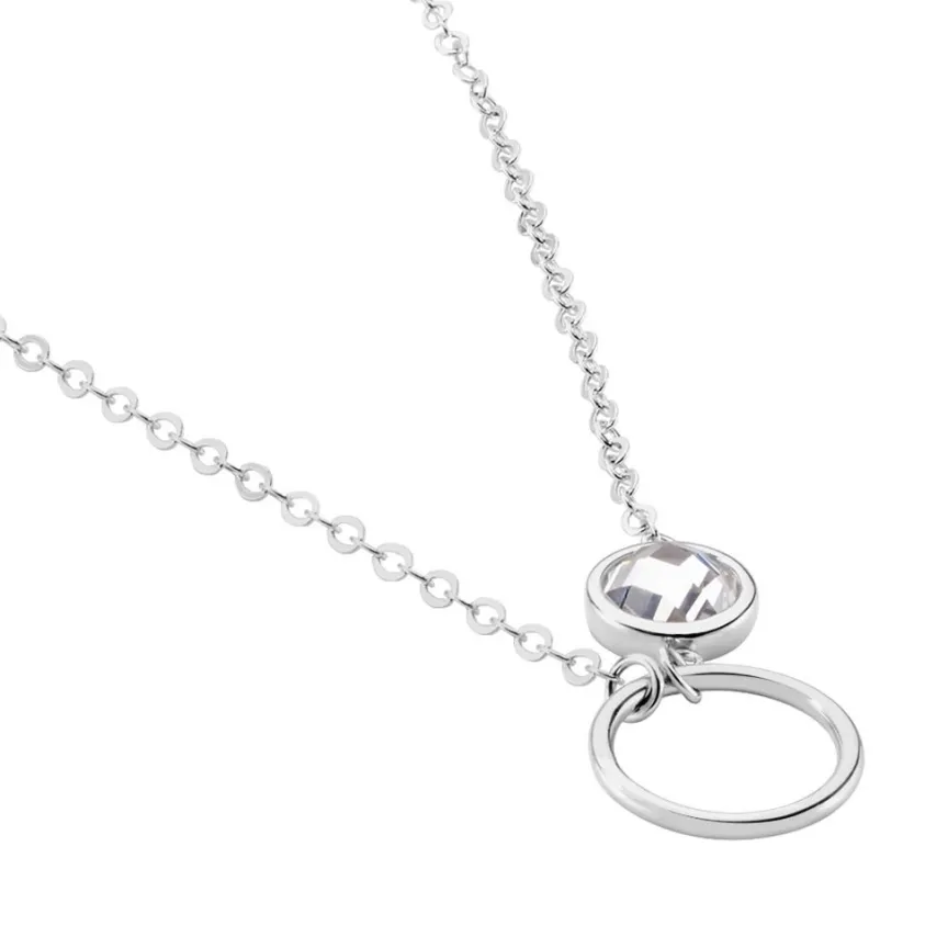 Collier Argent Blanc 925/1000 Cercle Et Oxyde De Zirconium Facettes Sertis Clos 45cm