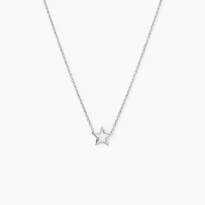 Collier Argent Blanc 925/1000 étoile Ajourée Maille Forçat 42+3cm