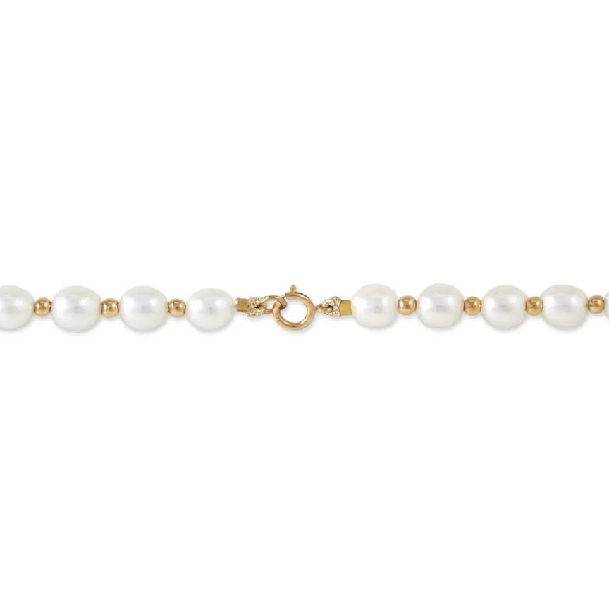 Collier Or Jaune 375/1000 Perles De Culture 5.5/6mm Grain De Riz + Boules Or 42cm
