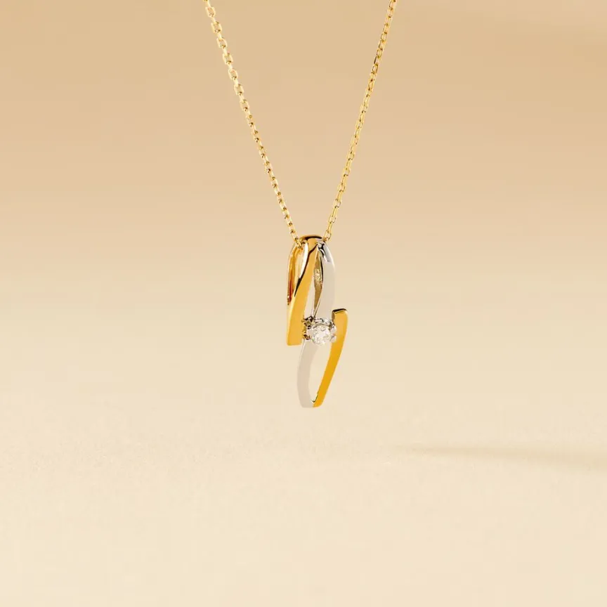 Collier Or Bicolore 375/1000 Diamants 0.05cts 42cm