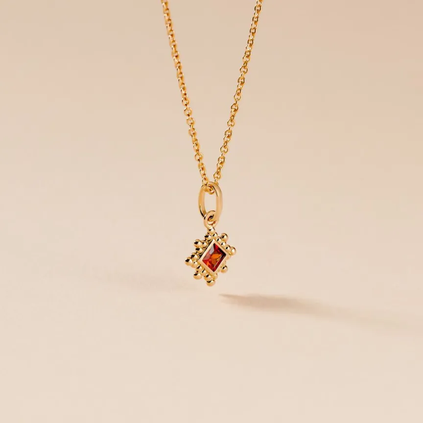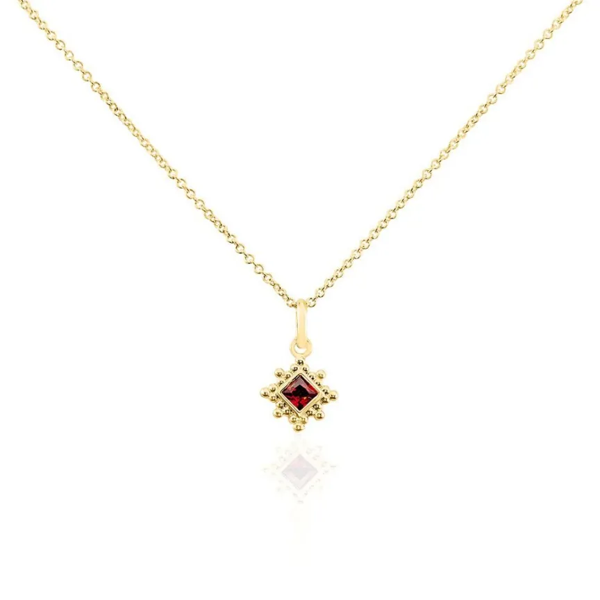 Collier Plaqué Or Jaune Losange Oxyde De Zirconium Rouge Entourage Perlé Maille Forçat 45cm