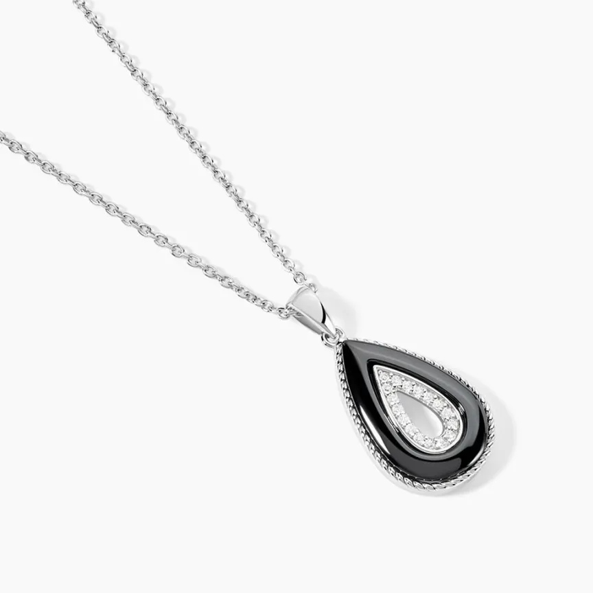 Collier Argent Rhodié 925/1000 Céramique Et Oxyde De Zirconium Forme Goutte 42+3cm