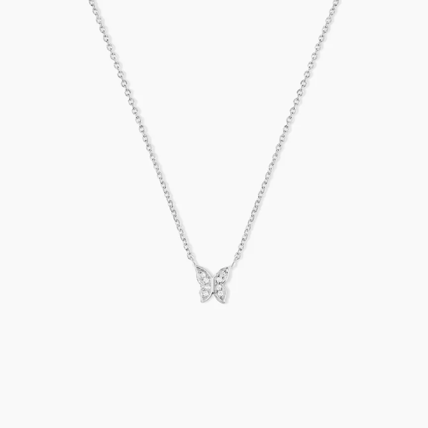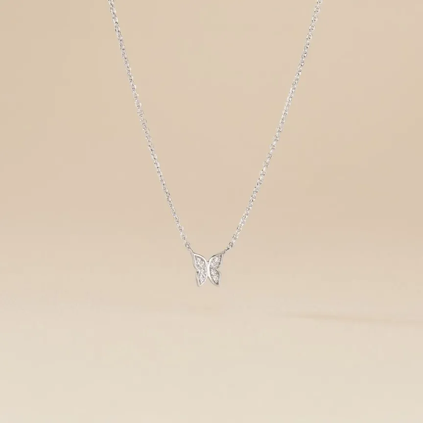 Collier Argent 925/1000 cadfan Papillon Pavage Oxydes De Zirconium Maille Forçat 45cm
