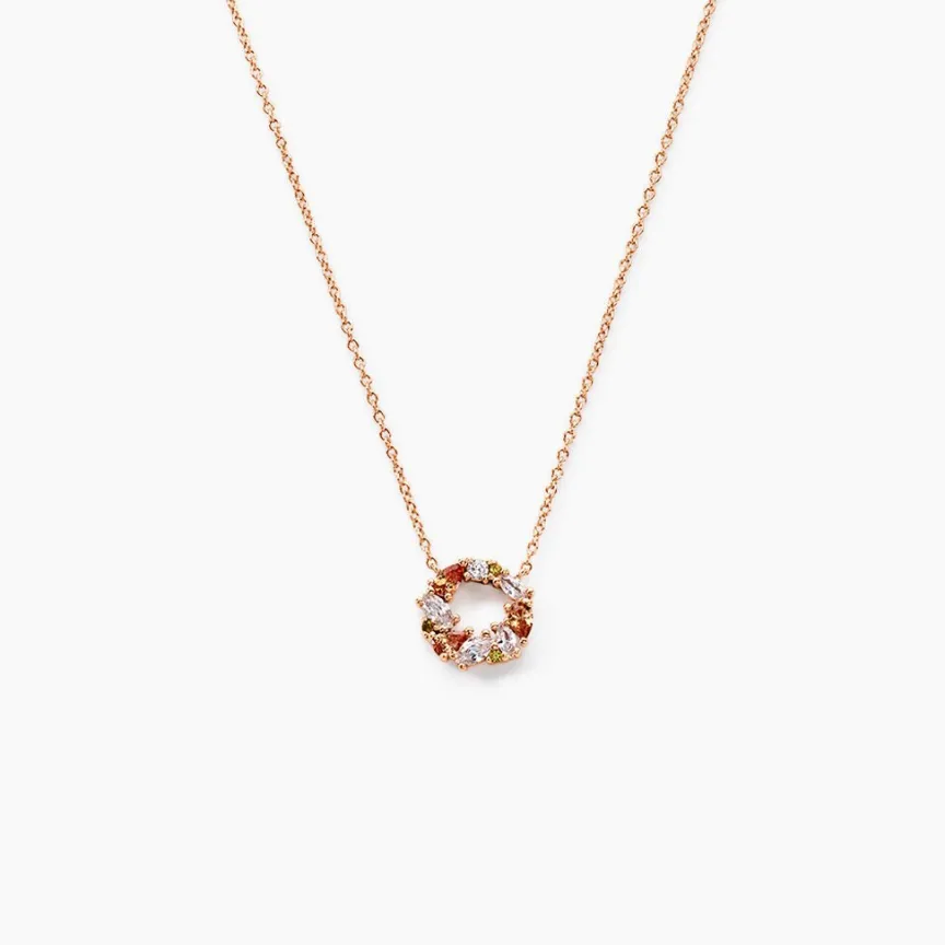 Collier Argent Rose 925/1000 Cercle Oxydes De Zirconium Multi Couleur Maille Jaseron 42+3cm