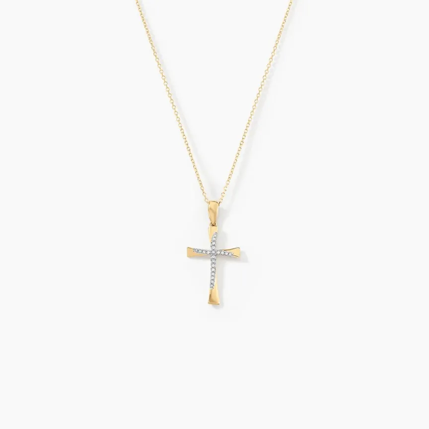 Collier Or Jaune 375/1000 Motif Croix Diamants 42cm