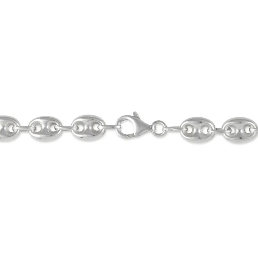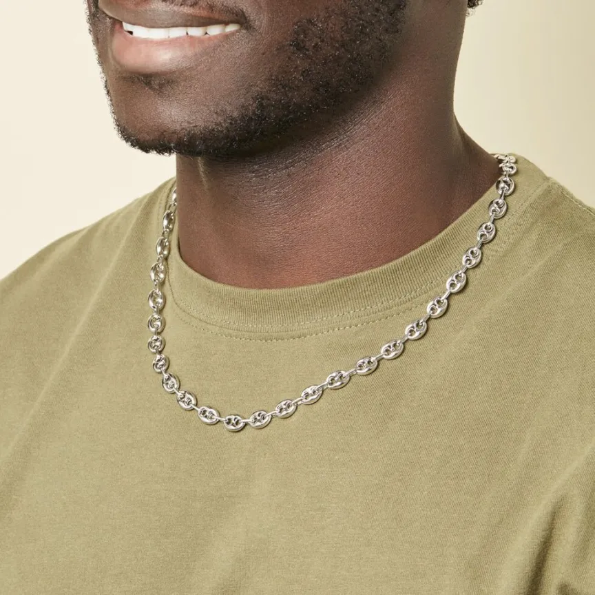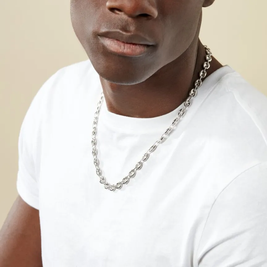 Collier Argent Blanc 925/1000 Maille Grain De Cafe Epaisseur 8mm 55cm