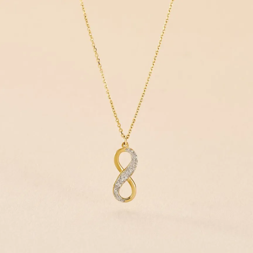 Collier Or Jaune 375/1000 Infini Vertical Glitter Argente Maille Jaseron 40+2cm