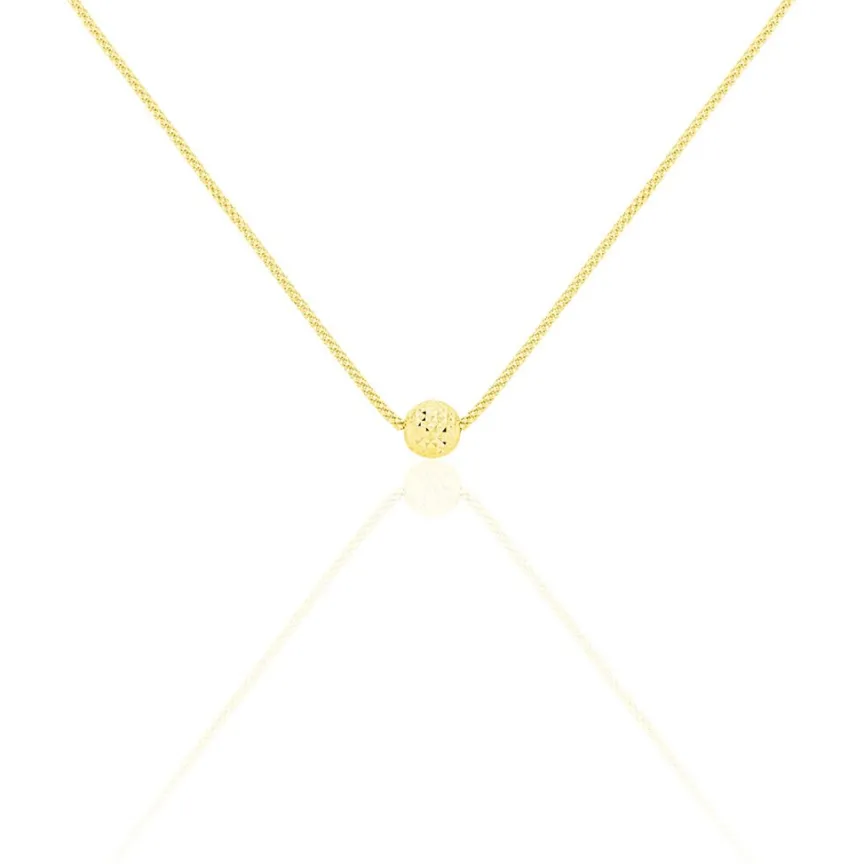 Collier Or Jaune 375/1000 Motif Boule Diamante Maille Pop Corn 42cm