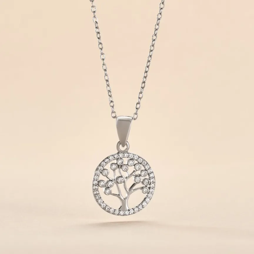 Collier Argent 925/1000 chimere Arbre De Vie Pm Micro Setting Et Sertis Clos Oxydes De Zirconium 45cm
