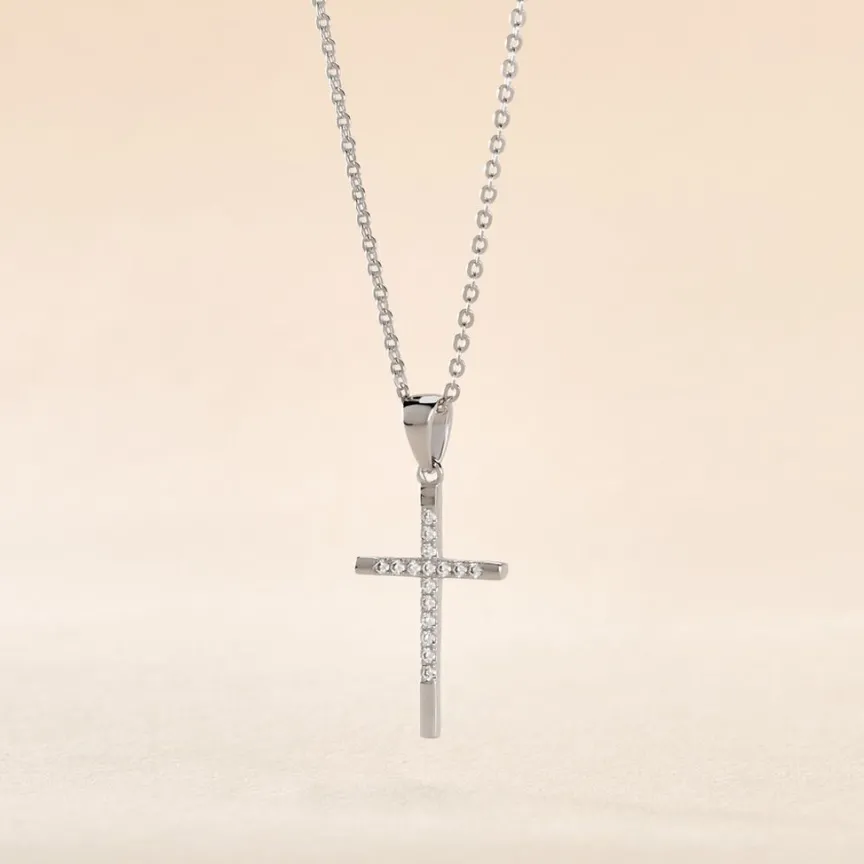 Collier Argent 925/1000 chirsta Croix Semi Pavee Oxydes De Zirconium