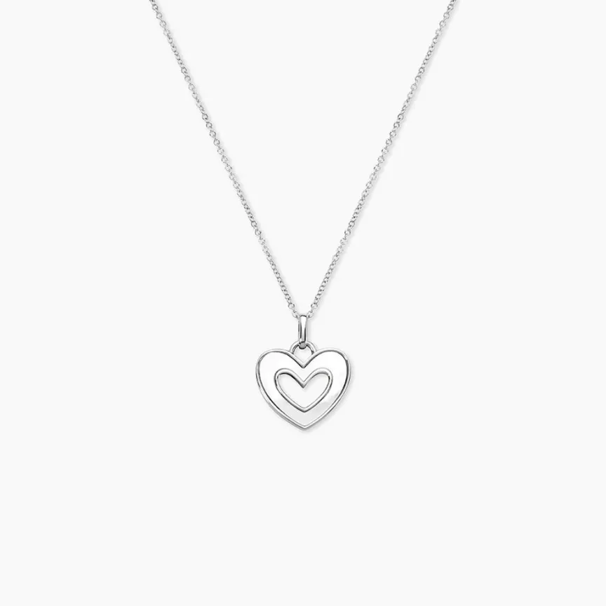 Collier Argent Blanc 925/1000 C艙ur Ajouré Nacre Blanche Maille Forçat 45cm