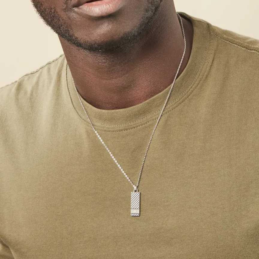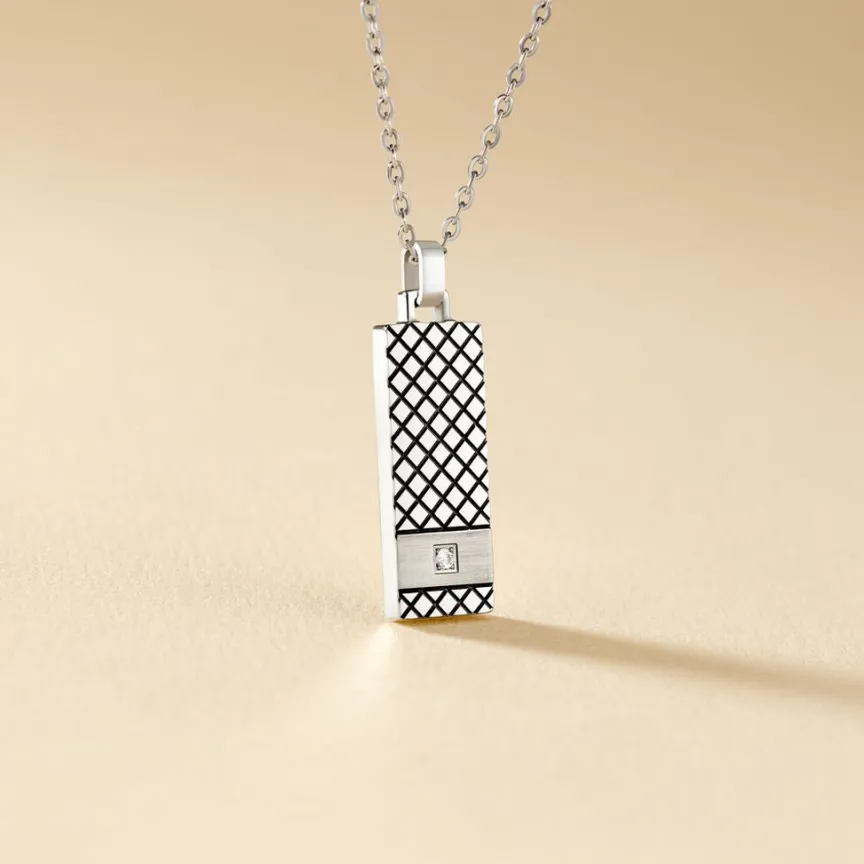Collier Acier Blanc Quadrillage Acier Blanc Et Ip Noir Oxyde De Zirconium Chaine Boules 50cm