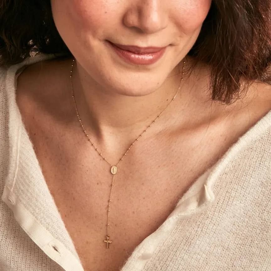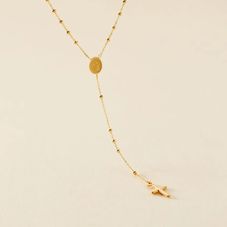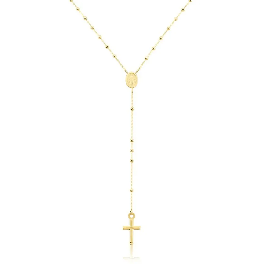 Collier Or Jaune 750/1000 Chapelet Croix Forme Cravate Maille Boule 46.5cm
