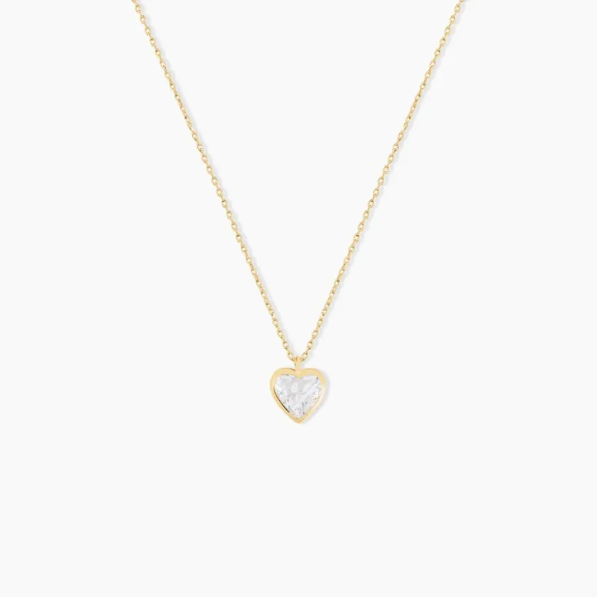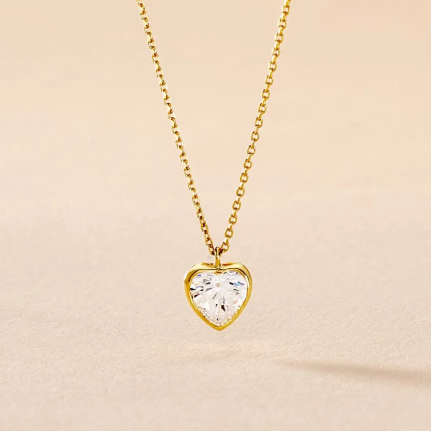 Collier Or Jaune 375/1000 Maille Jaseron Forme C艙ur Oxyde De Zirconium Serti Clos 40cm