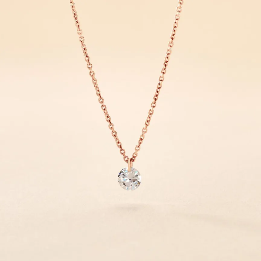 Collier Argent Rose 925/1000 1 Oxyde De Zirconium Perçée Maille Forçat 45cm