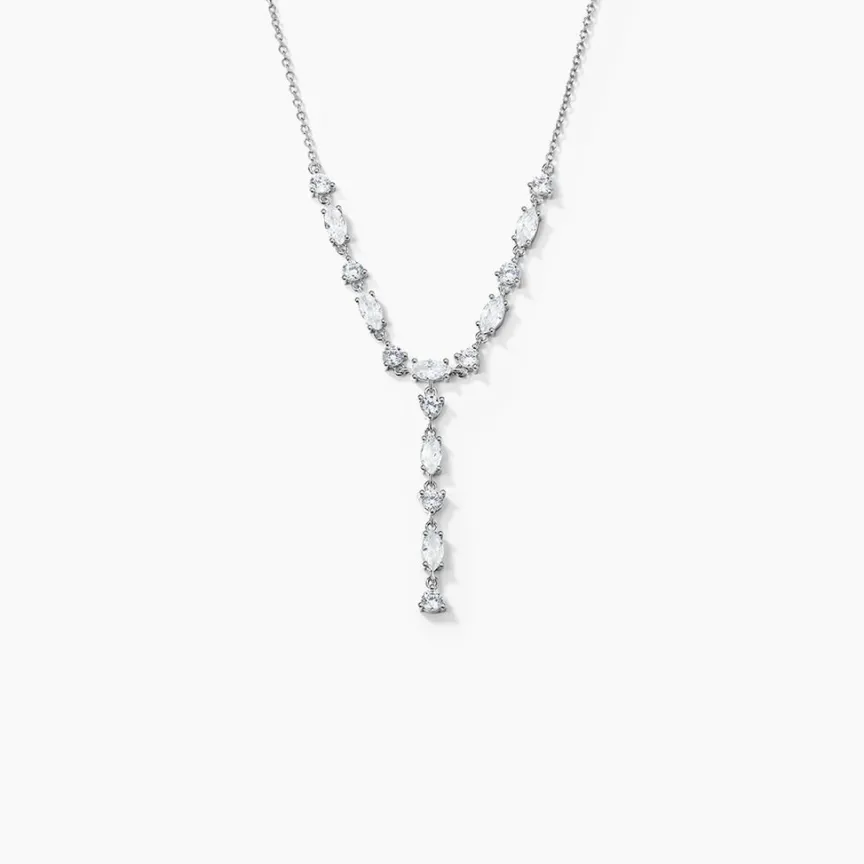 Collier Cravate Argent Blanc 925/1000 Multipierres Navettes Oxydes De Zirconium Maille Forçat 42+3cm
