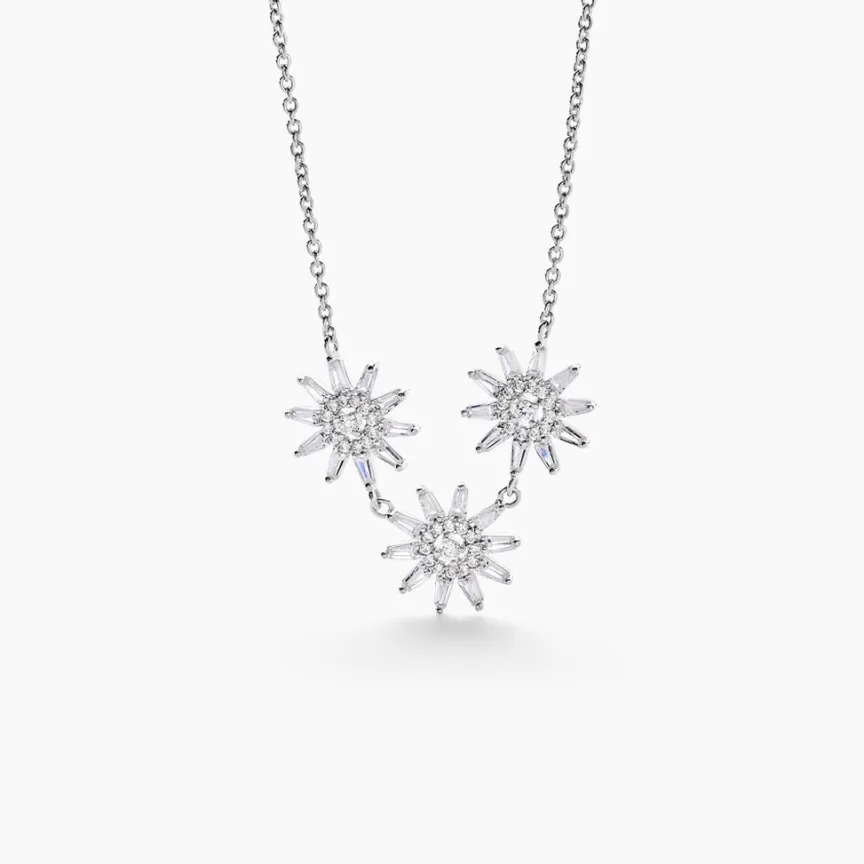 Collier Argent Blanc 925/1000 Triple Fleur Pavage Oxydes De Zirconium Maille Forçat 42+3cm