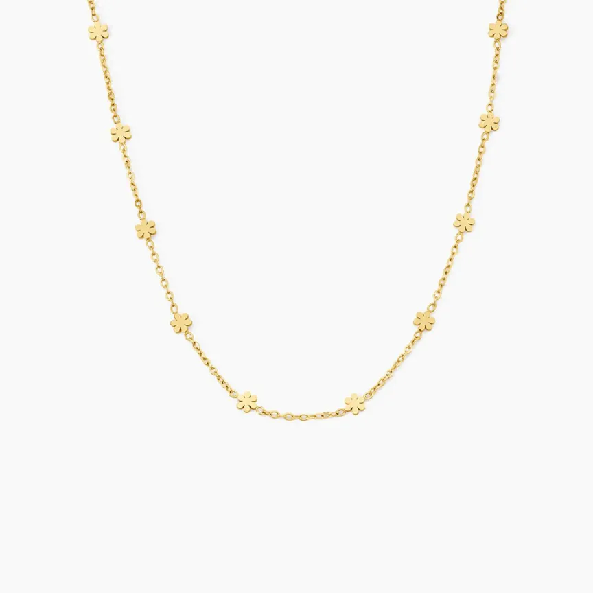 Collier Acier Inoxydable Jaune Motif Fleurs Maille Forçat Longueur Longueur 42+5cm