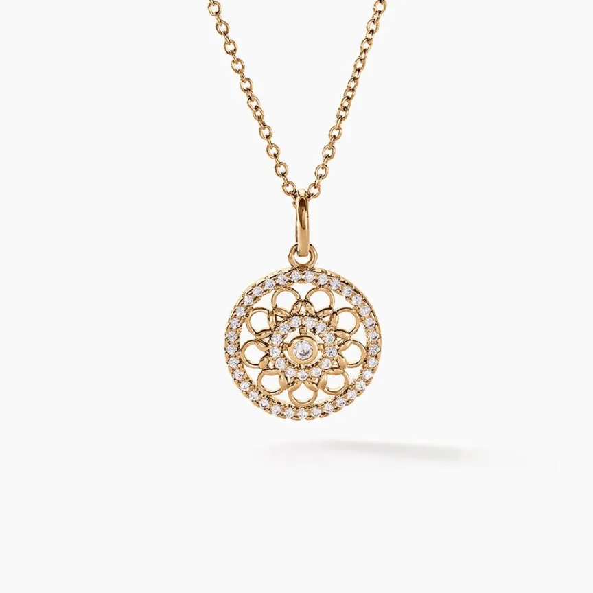 Collier Plaqué Or Jaune Rosace Pavage Oxydes De Zirconium Maille Jaseron 42+3cm
