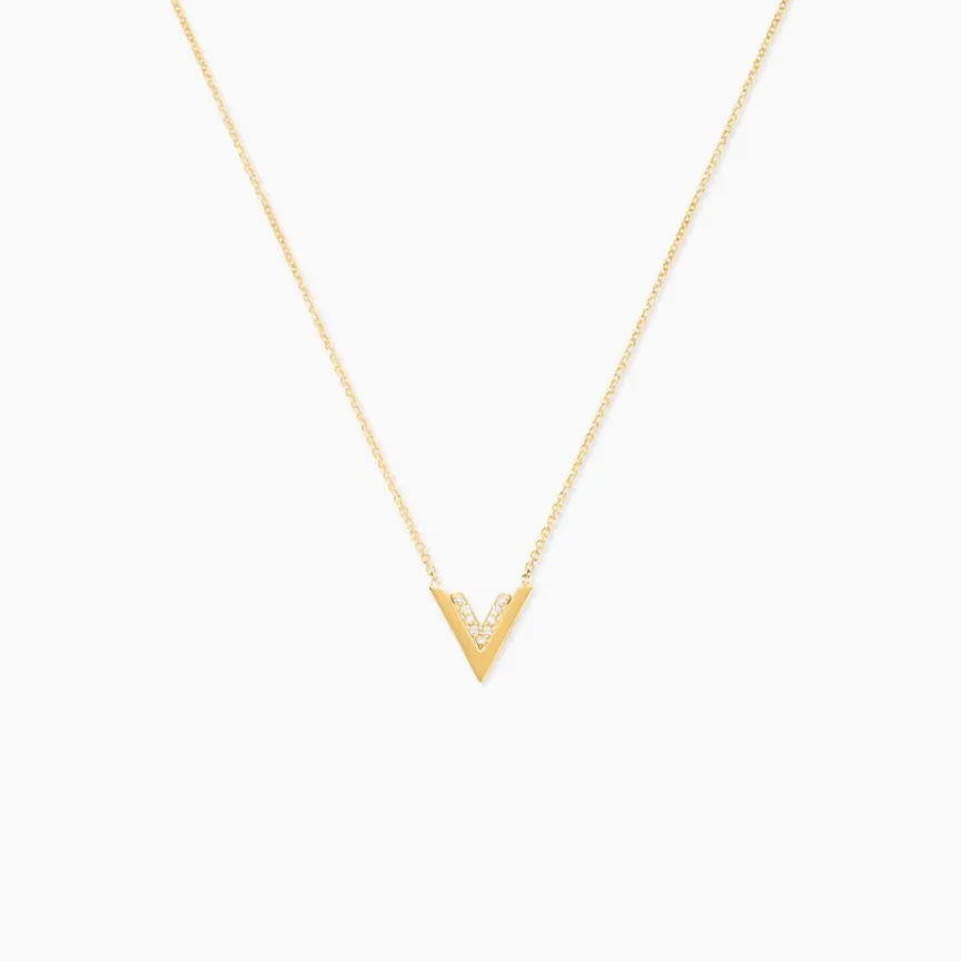 Collier Or Jaune 375/1000 Doubles V Oxydes De Zirconium 42cm