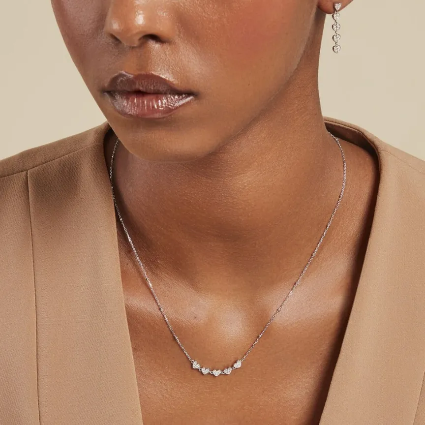 Collier Argent Blanc 925/1000 C艙urs Oxydes De Zirconium Maille Boules 42+3cm