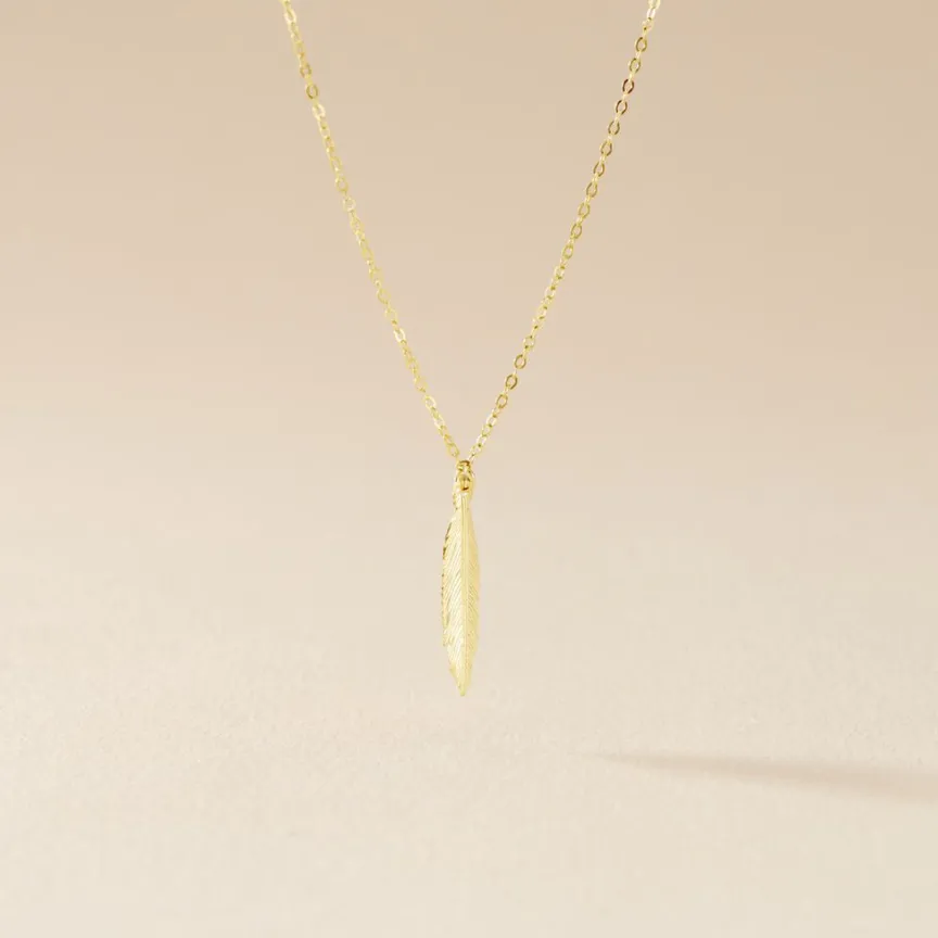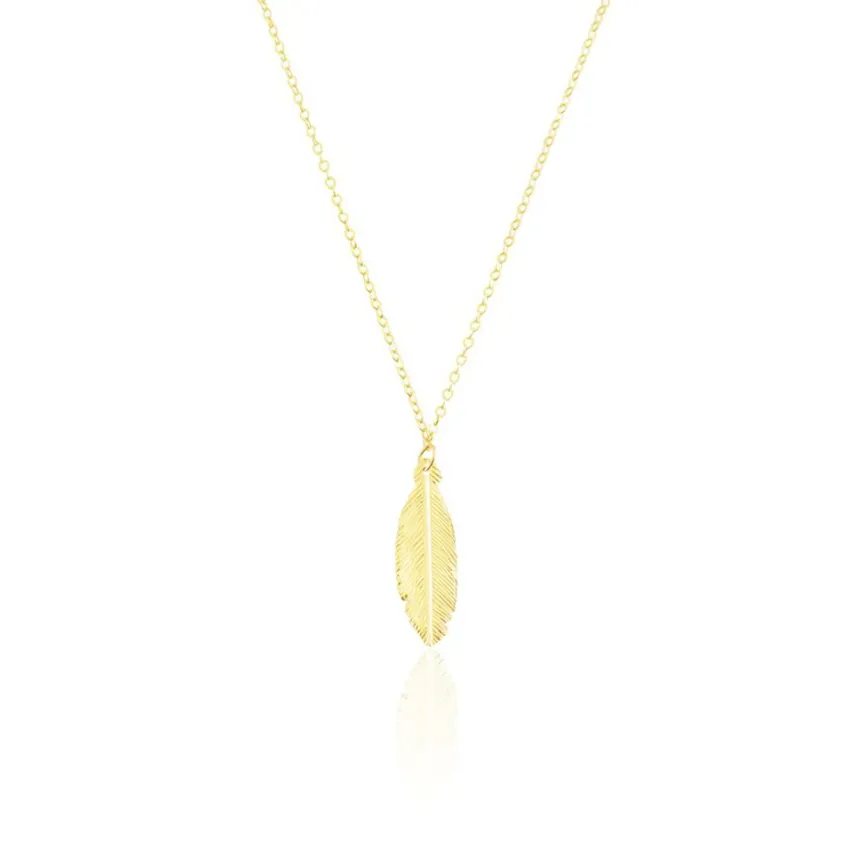 Collier Or Jaune 375/1000 Plume Maille Forcat 40+2cm