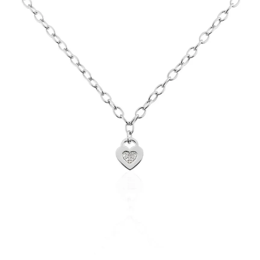 Collier Argent 925/1000 C艙ur Cadenas Chaine Epaisse Oxyde 45cm