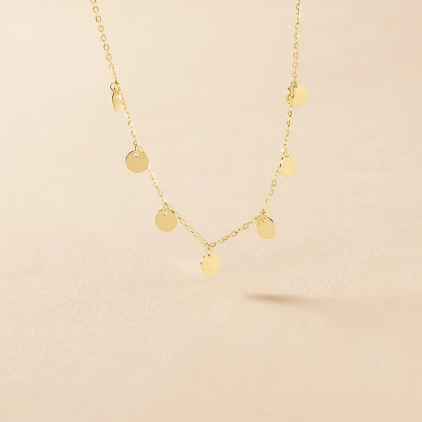 Collier Or Jaune 375/1000 Motifs Pastilles Pendantes Maille Jaseron 42cm