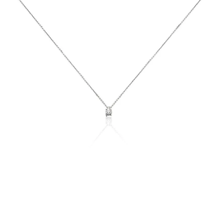 Collier Or Blanc 750/1000 Diamant 0.16cts Diamant Serti 4 Griffes Beliere Mobile Maille Forcat 40+2cm