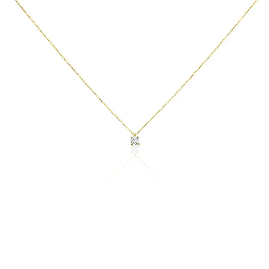 Collier Or Jaune 750/1000 Diamant 0.26cts Diamant Serti 4 Griffes Beliere Mobile Maille Forcat 40+2cm