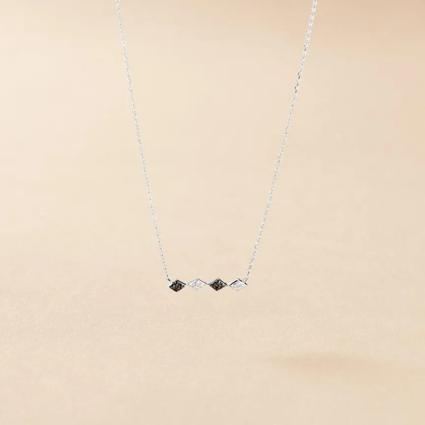 Collier Or Blanc 375/1000 Enid’ Diamants Blanc Et Diamants Noirs Forme Losange 42cm