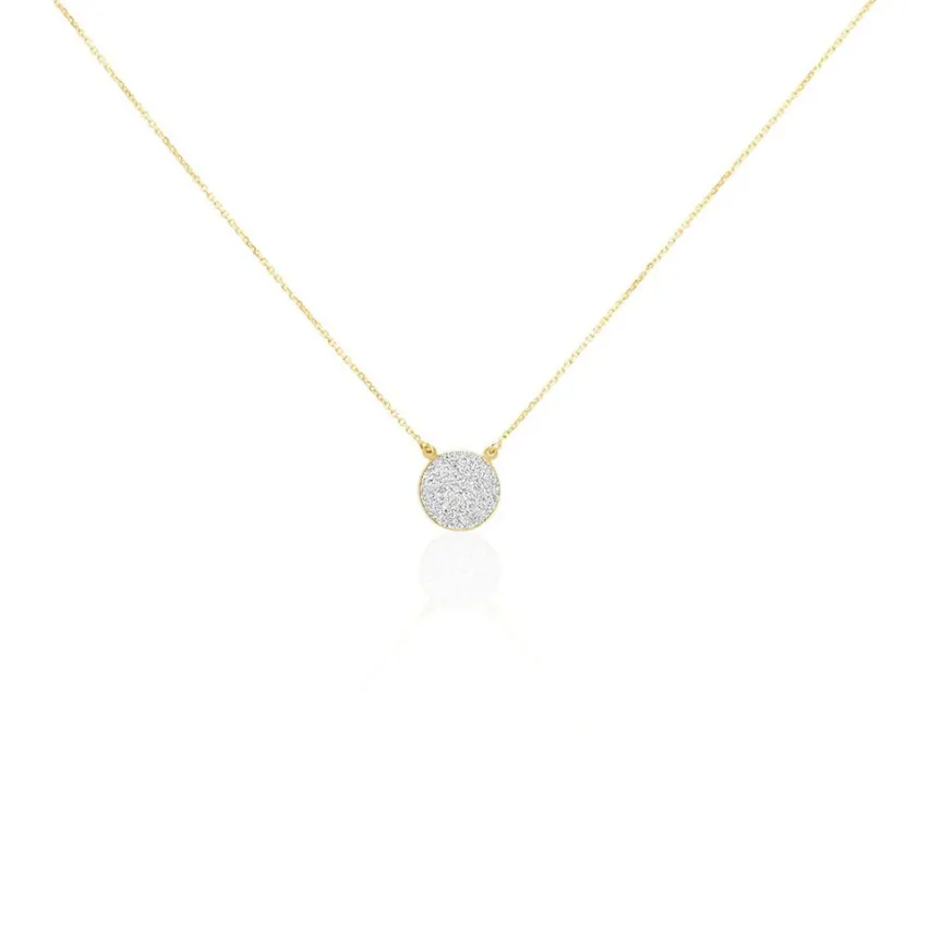 Collier Or Jaune 375/1000 Pastille Glitter Silver Maille Jaseron 42+3cm