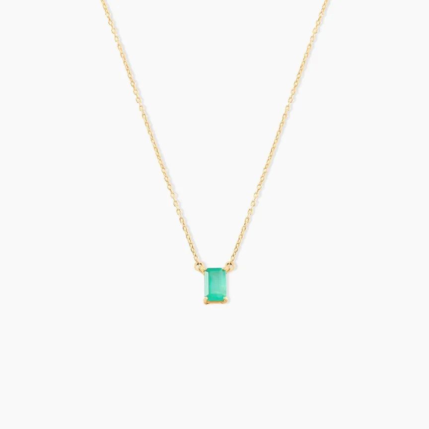 Collier Or Jaune 375/1000 Emeraude Forme Rectangle Serti Griffes 0.55cts Maille Forcat 40+2cm