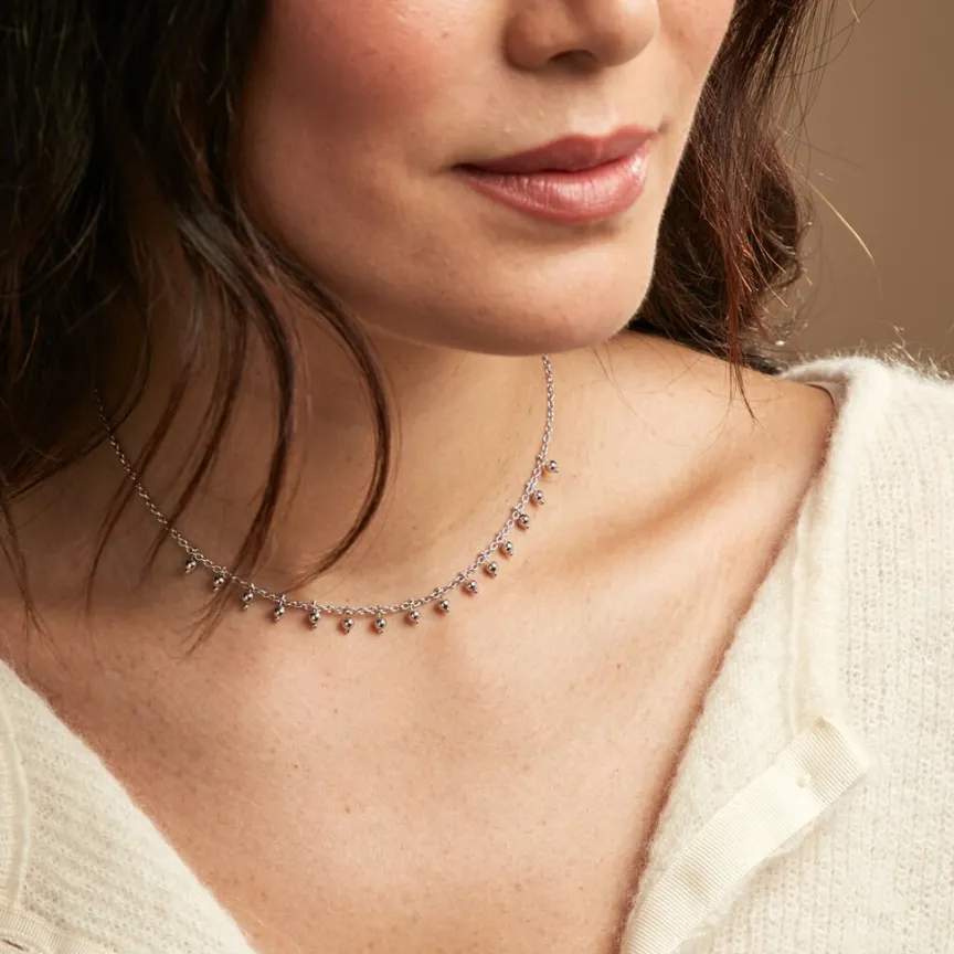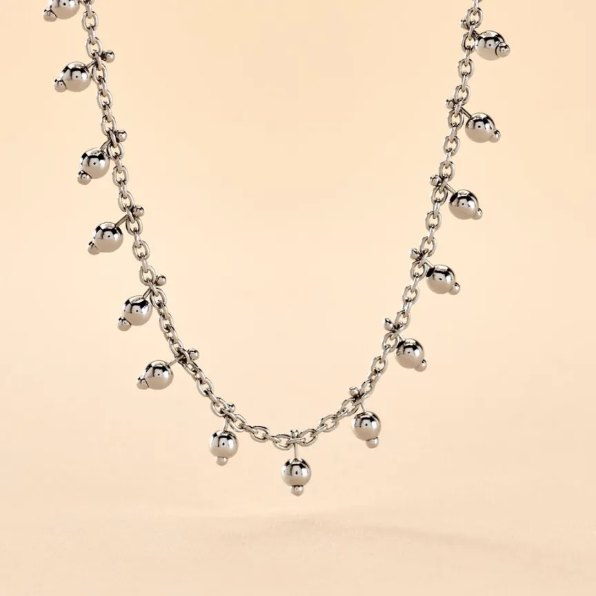 Collier Argent Blanc 925/1000 Pampilles Boules Maille Forcat 45cm