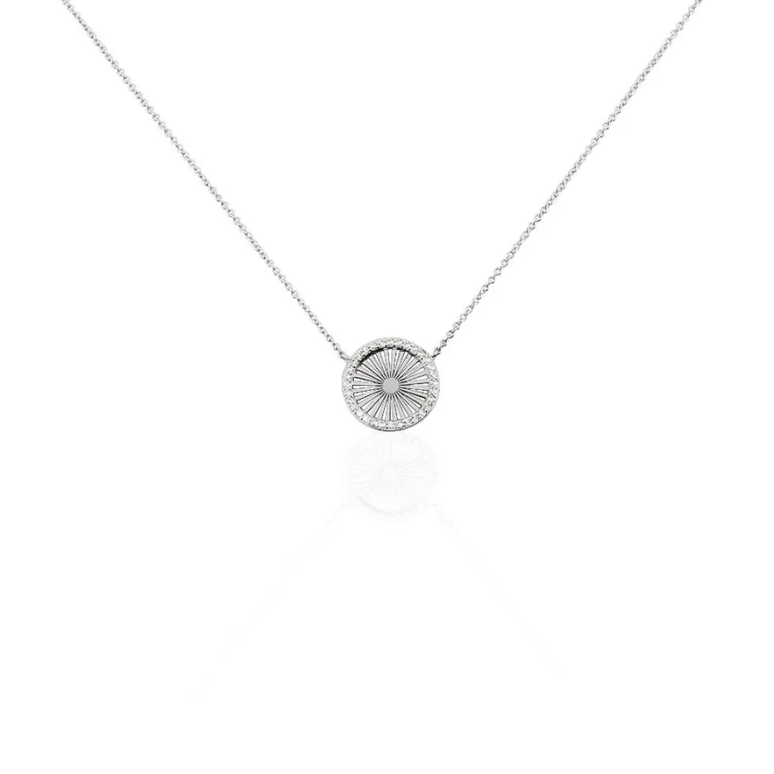 Collier Argent Blanc 925/1000 Soleil Ajoure Micro Setting Oxydes De Zirconium 45cm