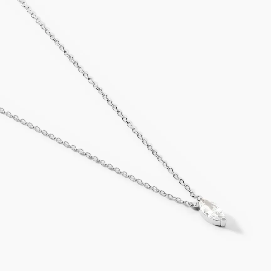 Collier Argent Blanc 925/1000 Oxydes De Zirconium Navette Maille Forçat 42+3cm