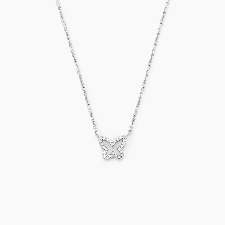 Collier Argent 925/1000 gladys Forme Papillon Ajoure Oxydes De Zirconium Malle Forcat 45cm