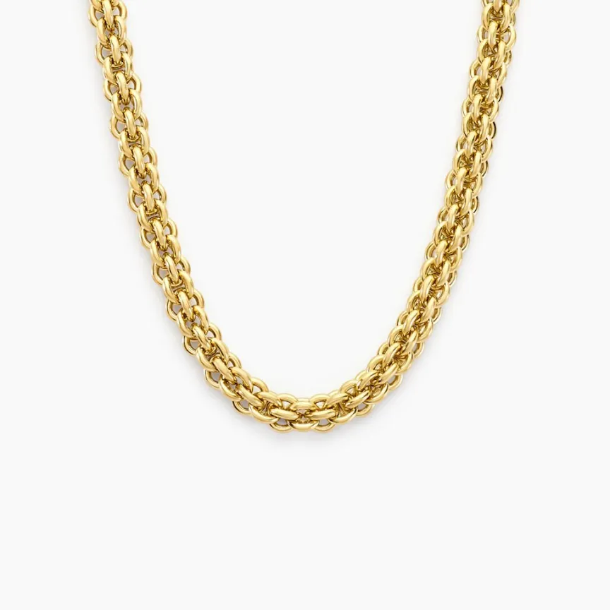 Collier Acier Inoxydable Jaune Maille Fantaisie Largeur 7.3mm 42+3cm