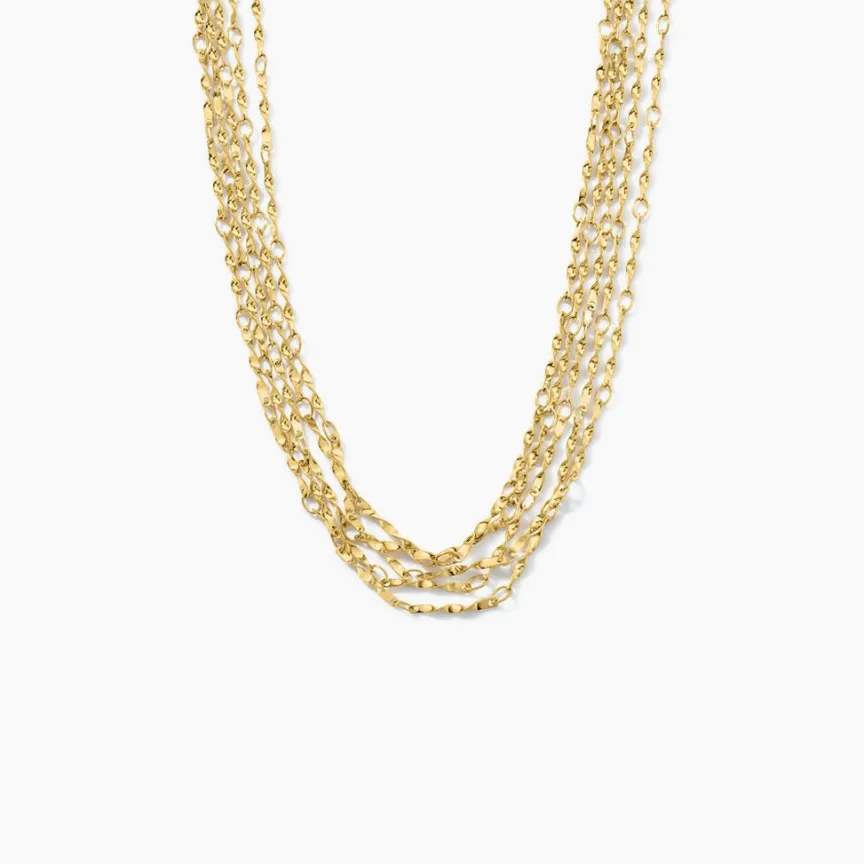Collier Acier Inoxydable Jaune Multirangs Mailles Torsades 40+5cm