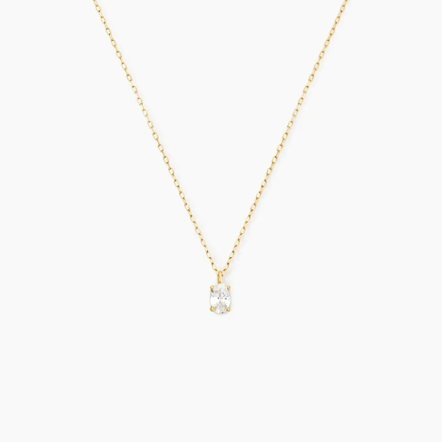 Collier Or Jaune 375/1000 Solitaire Ovale Oxyde De Zirconium Serti Griffes Maille Forcat 40+2Cm